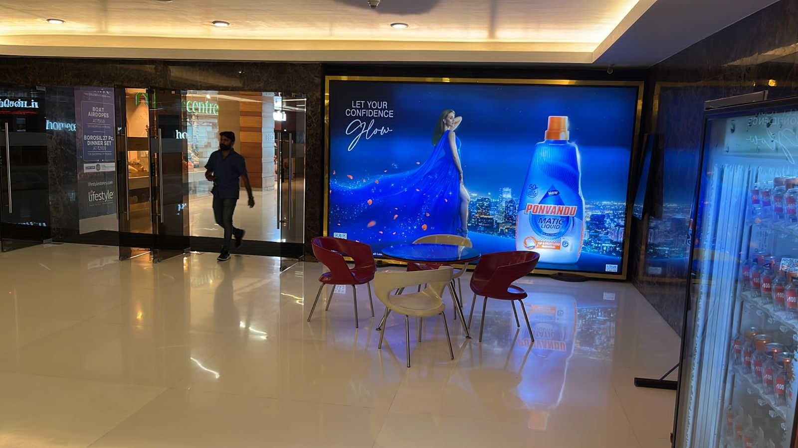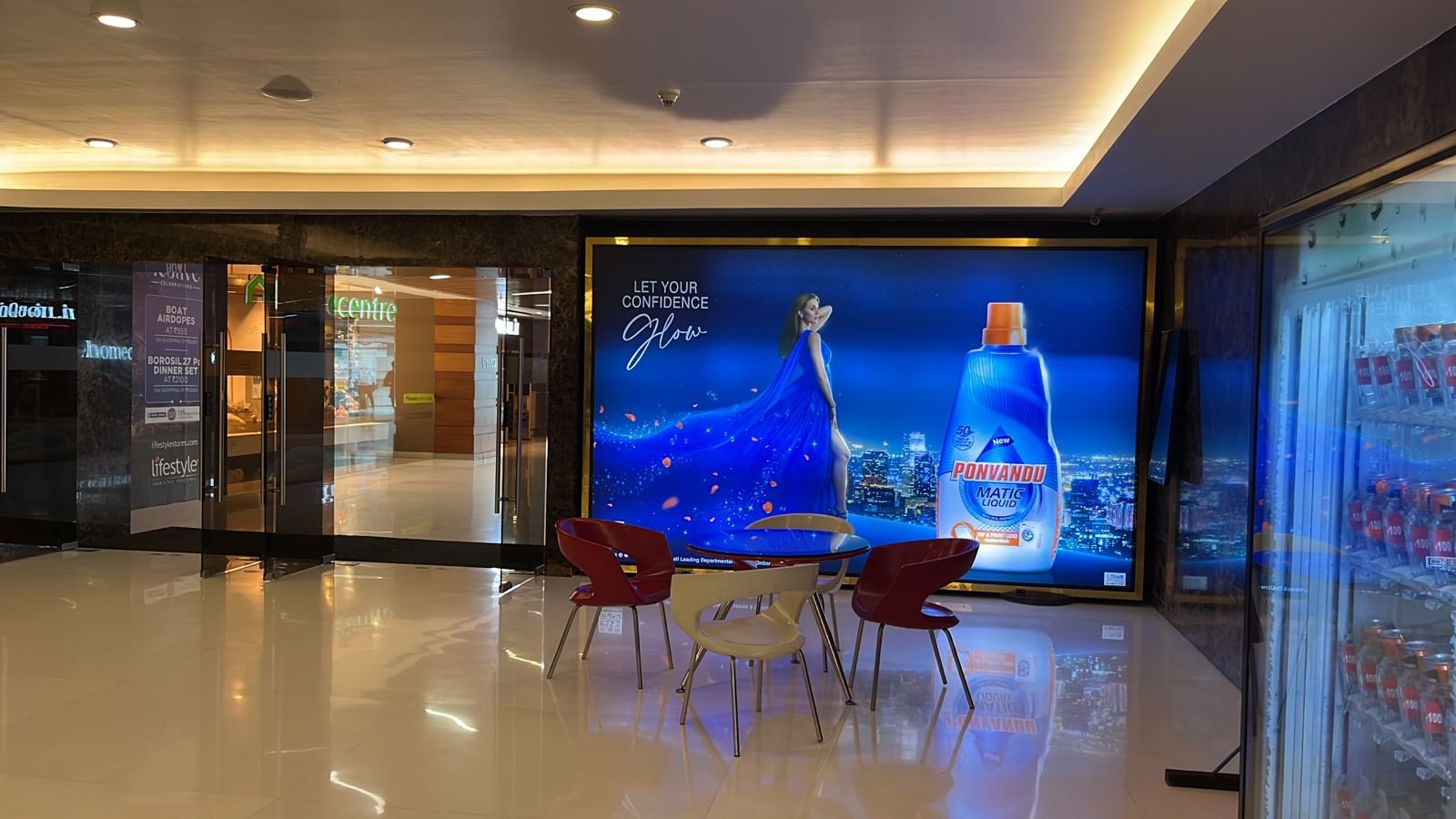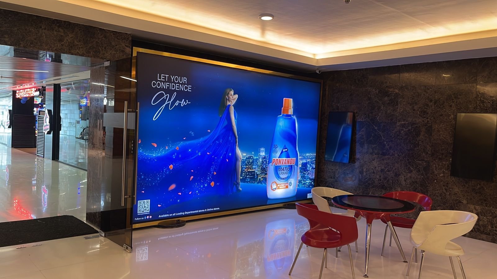 Cinema environments offer ideal conditions for large format indoor advertising. As viewers await their movie, their attention is naturally drawn to vibrant visual elements around them. This high-dwell-time atmosphere is perfect for advertisers aiming to drive deeper brand recall.